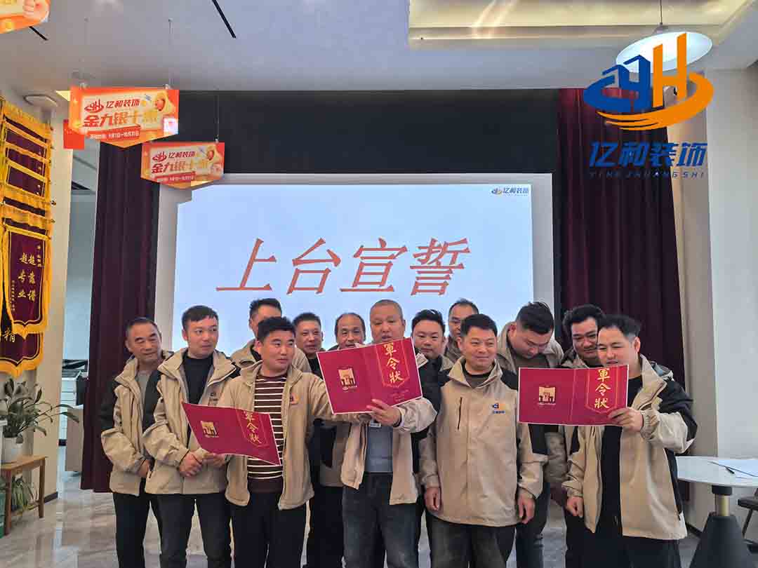 一纸军令状,千斤责任心!亿和装饰工程部全员宣誓,以工地服务、工期把控、工程质量等硬指标为标尺,用奖惩机制倒逼责任落实。我们所有的完善与进步,最终都只为给业主呈上满意答卷!