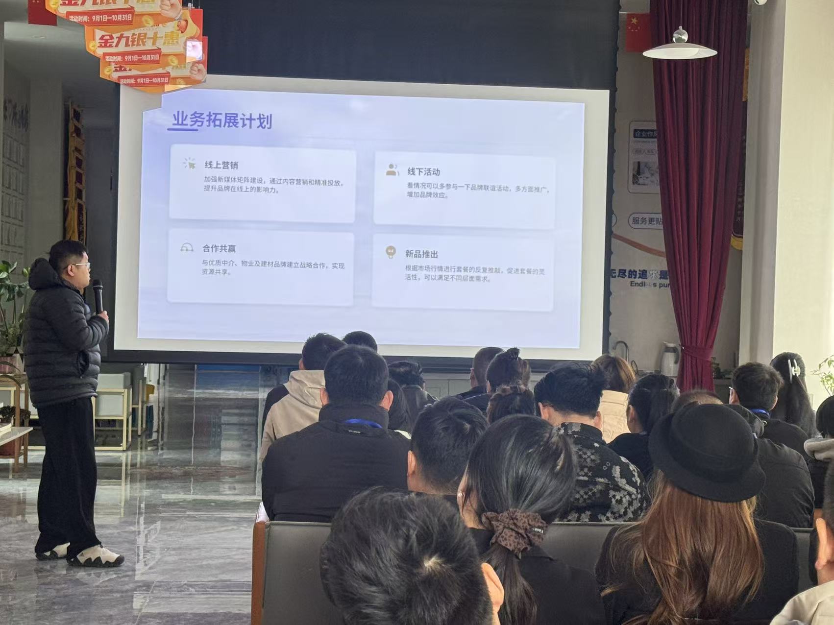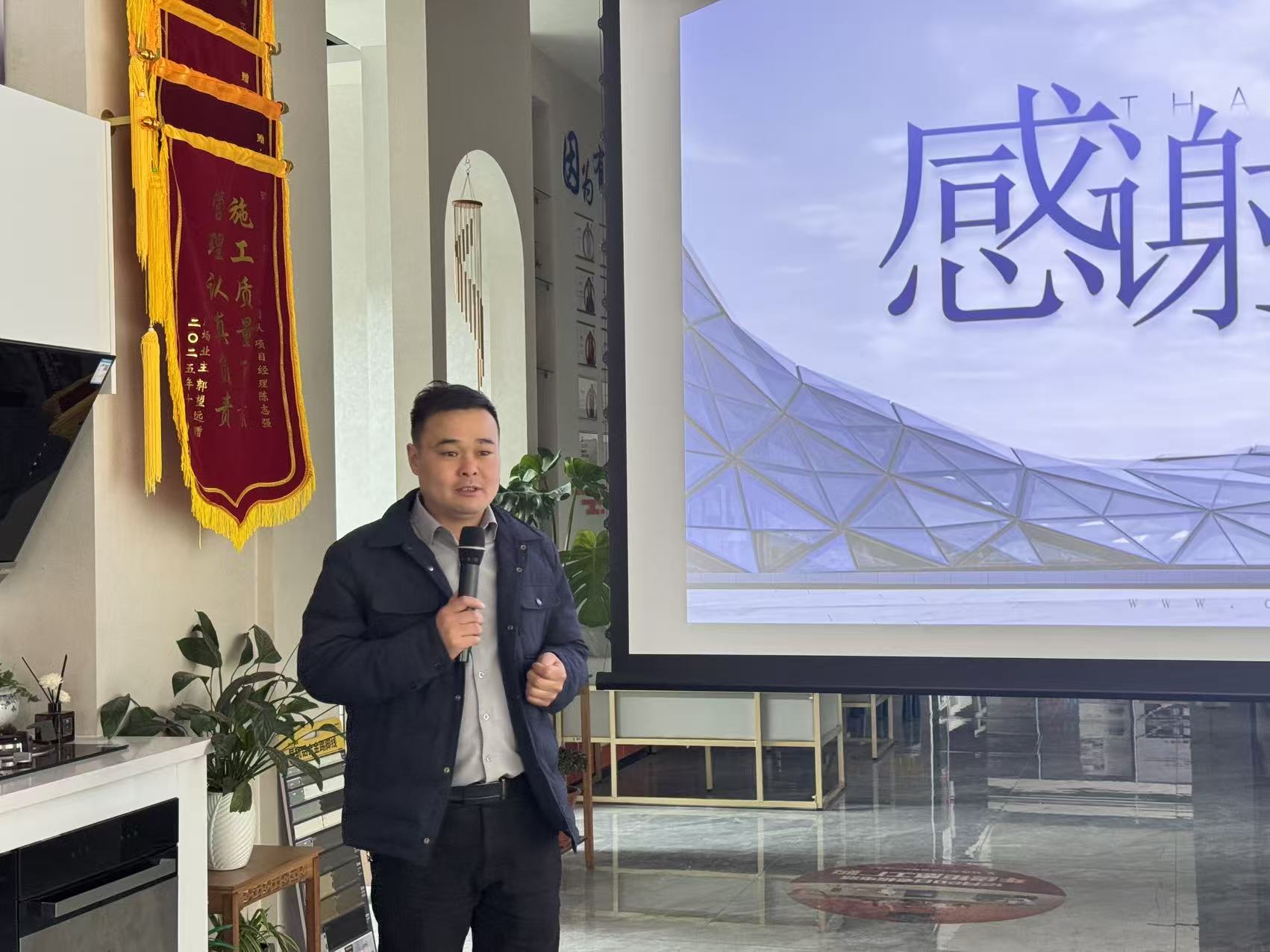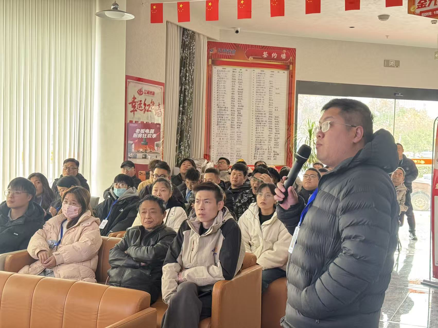 会上,三大门店店总围绕业务拓展、服务优化、工艺升级等维度作汇报,2025 年公司跨城服务业主超千组,以优质服务实现口碑零差评。同时明确 2026 年核心方向:聚焦 “松弛感空间设计”“自然材质应用” 等家装趋势,升级环保工艺与光影设计服务;强化三店协同联动,优化 “同城免费量房、定制化设计、一对一监理” 等服务,深耕浙中家装市场。